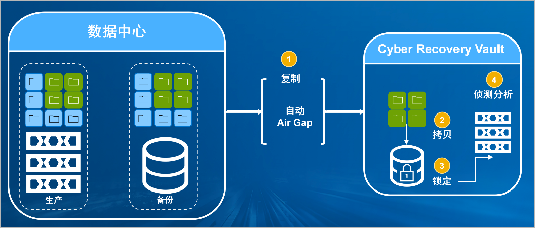 bbin宝盈集团官网防勒索病毒方案将生产中心备份数据复制到Vault区,复制后网络自动断开实现弹性隔离。Vault区的数据快速拷贝,并对拷贝版本加锁(在锁定期数据不允许删除和修改)。Vault沙箱内对拷贝版本进行扫描分析,验证数据是否完好。
